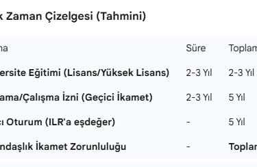 Vatandaşlık Süresi: Toplam 5 yıl yasal ikamet (bu sürenin bir kısmı Stamp 4 statüsünde olmalıdır) sonrası vatandaşlık başvurusu yapılabilir.